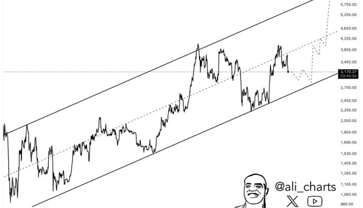 In the chart, Martinez has highlighted how ETH’s upcoming price trend could look if a similar trajectory follows now as well. “If Ethereum $ETH is following an ascending parallel channel, a dip to the lower boundary at $2,800 could act as a launchpad for a move toward $6,000,” notes the analyst.