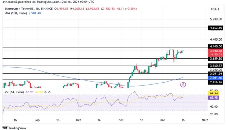 Ethereum Price Approaches The Crucial $4,100 Resistance Level