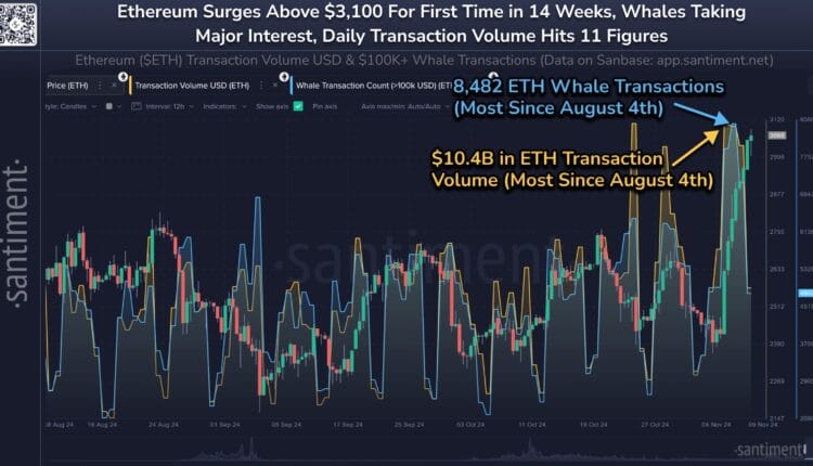 Ethereum Transaction Volume & Whale Transfer Count Have Spiked Recently