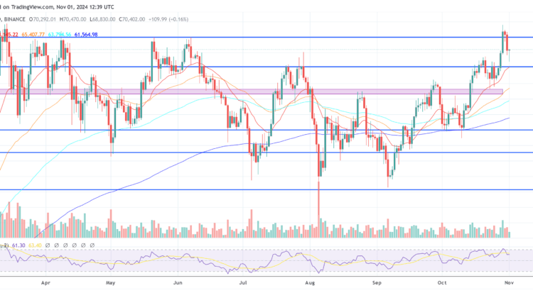 As the United States approaches its presidential election on Tuesday, November 5, 2024, the Bitcoin market is bracing for significant volatility. In the lead-up to the election, Bitcoin surged to a high of $73,620 on Tuesday, likely reflecting investor optimism over a potential victory for former President Donald Trump. However, by Friday, the BTC price experienced a correction, dipping to $68,830 amid a more cautious, risk-off sentiment as the election looms.